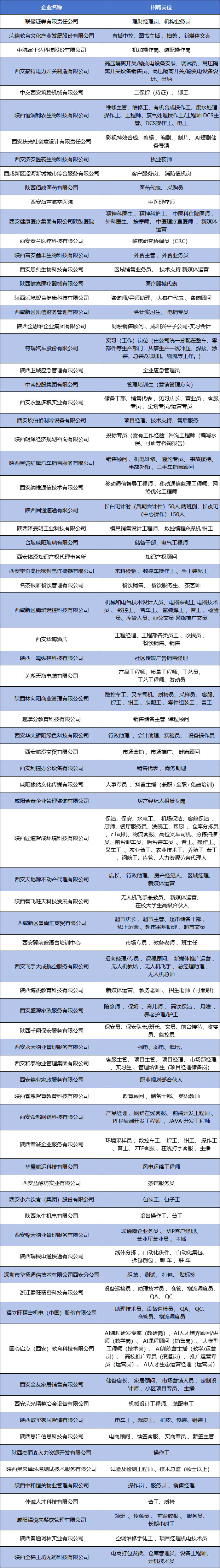 招聘岗位及企业名单