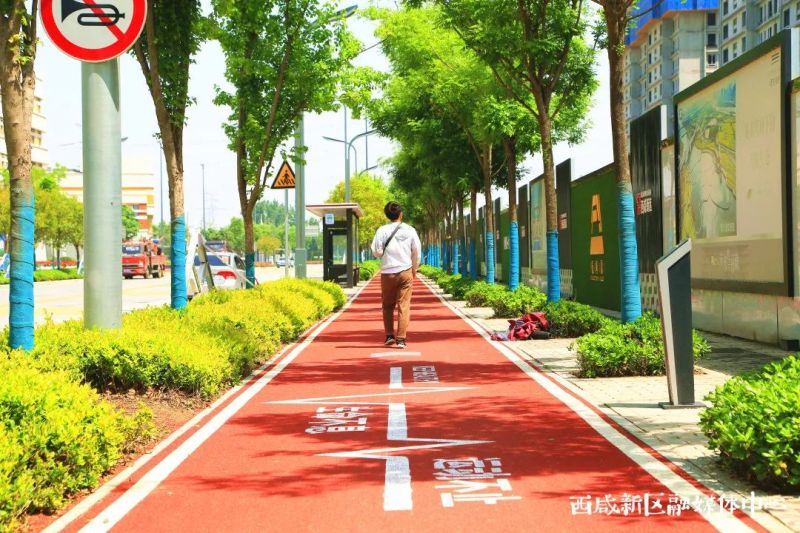 推窗可见绿,抬脚即进园。近年来,西咸新区践行科学绿化理念,坚持以人为本,建设“节约型”绿化,彰显新区特色,以“增绿、添花、加彩”为基本思路,深入推进“美丽西咸·绿色田园”环境景观提升行动,改善城市面貌,提升城市品质,在城市之间打造更多“上班的路”“回家的路”。一条条城市绿道,将社区与公园、景区、产业园区等串联了起来,营造了丰富的文化体育休闲生活场景,让人们的出行步步皆风景,市民群众的幸福感和获得感越来越明显。