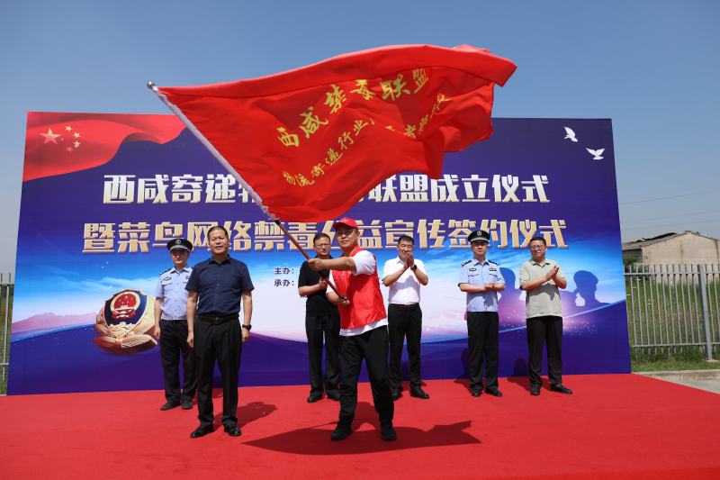 公安西咸新区分局立足实际、结合现状,6月14日上午,在菜鸟西北物流基地举行西咸新区寄递物流禁毒联盟成立仪式。西安市禁毒委员会办公室副主任,西安市公安局禁毒支队副支队长张四维、西安市邮政管理局市场监督管理处处长李永哲、西安市公安局物流寄递犯罪侦查支队七大队大队长张仕禹、西咸新区禁毒委员会办公室主任,公安西咸新区分局副局长李勇生、公安西咸新区分局刑侦大队副大队长王辉及菜鸟集团公共事务部西北区域总经理刘伟参加了仪式。