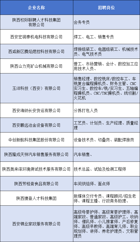 招聘岗位及企业名单