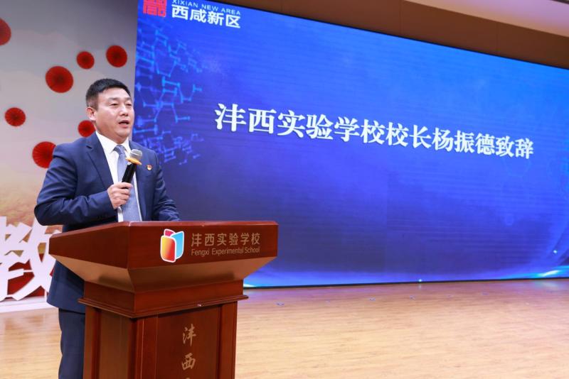 会上,沣西实验学校教育集团总校长杨振德热情致辞,以《让每个孩子站在舞台中央》为题,为参会者分享了学校 “五育融合、全员赋能、全域育人”的教育生态探索与实践,为区域教育高质量发展探索了实践路径。
